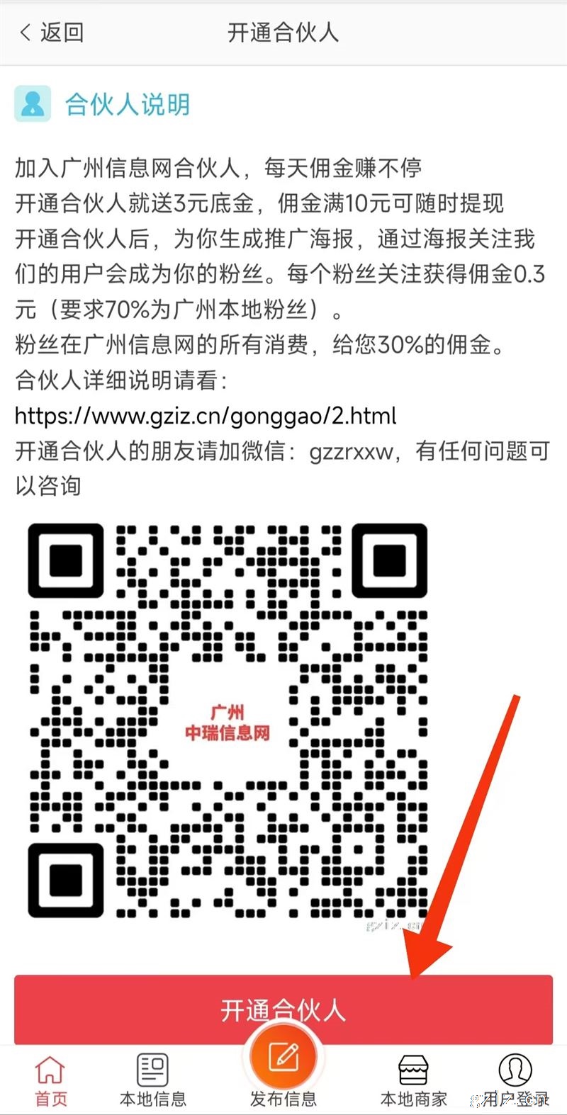 开通广州中瑞信息网合伙人 分享海报到朋友圈 扫码就有佣金拿