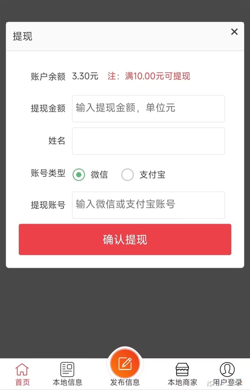 选择微信的,提现账号写您的微信号,客服会加你的微信给您转红包